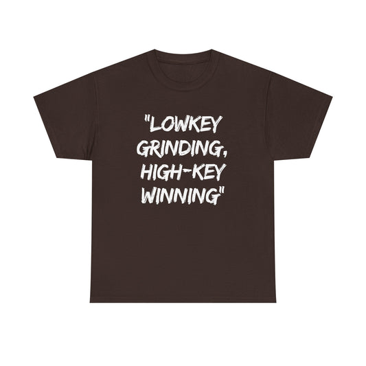 Motivational Unisex Heavy Cotton Tee - 'Lowkey Grinding, High-Key Winning'