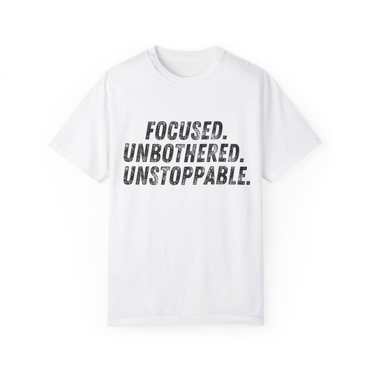Motivational Unisex Garment-Dyed T-Shirt - Focused, Unbothered, Unstoppable