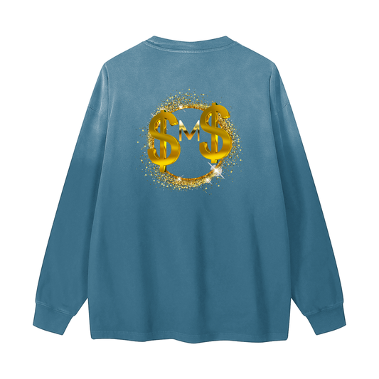 Silently Moving Successfully Gradient Vintage Washed Long Sleeve Tee - 270 GSM